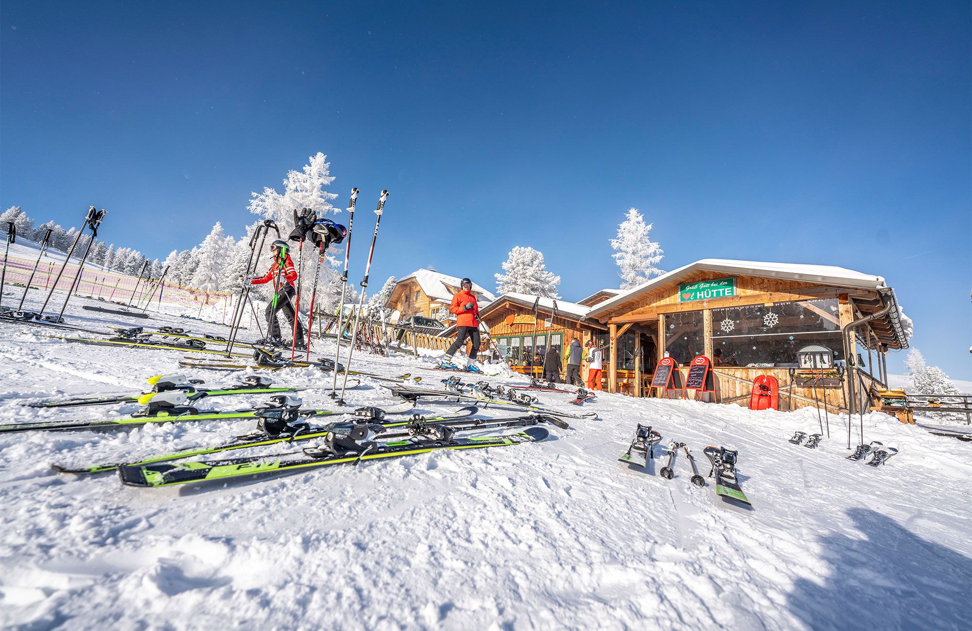 Die Herzl Hütte auf der Hochrindl liegt direkt am Zirbenlift, auf der Hälfte des Zirbenhangs, oberhalb des Parkplatzes. Sie ist in den Sommermonaten bei Wanderern und bei Skifahrern im Winter äußerst beliebt. Die Herzl Hütte bietet einen gemütlich-rustikalen und mit vielen hübschen Details eingerichteten Gastraum, sowie eine großzügige überdachte Terrasse mit herrlichem Panoramablick bis zu den Karawanken mit Koschutta, Hochstuhl und Petzen. Vom großen Parkplatz zu uns sind es nur fünf Fußminuten!